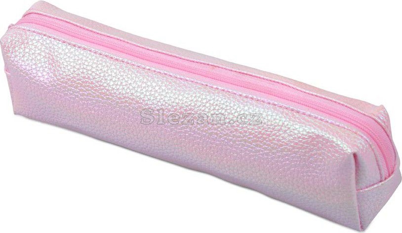 Školní penál/etue mini s perleťovým povrchem v růžové barvě.
