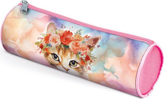 Tato roztomilá etue s motivem kočičky s květinovou korunou na pastelovém pozadí zaujme na první pohled a rozjasní každou školní lavici.