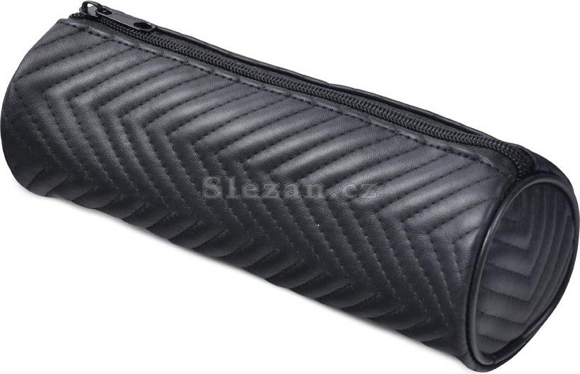 Školní penál/etue válcového tvaru je v elegantní černé barvě.