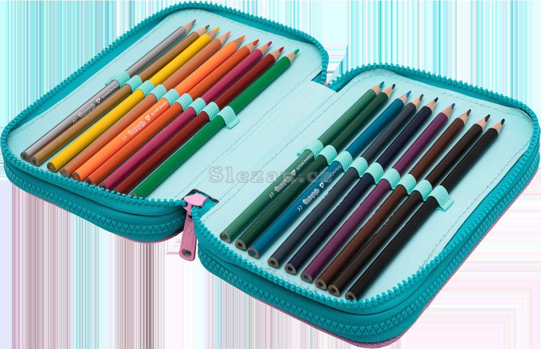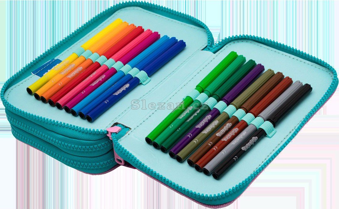 Obsahuje: 18 × fixa, 18 × pastelka,1 × nůžky, 1× guma a ořezávátko, 2 tužka, 2× propiska, 3 × pravítko
