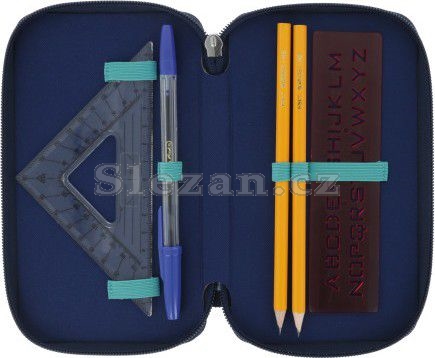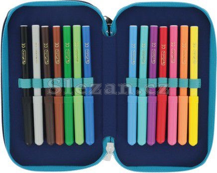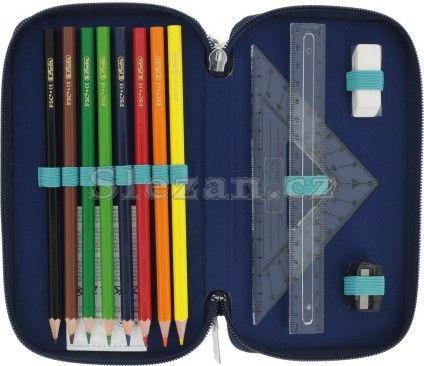 výplň: 14 fix,8 šestihranných pastelek, 2 černé šestihranné tužky, 1 plastové ořezávátko,1 barevná šablona