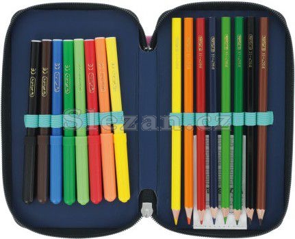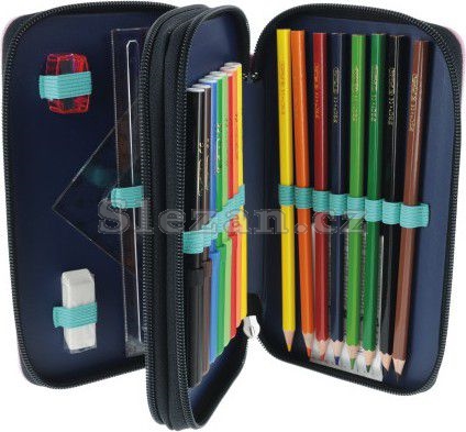 8 fixů, 8 pastelek, 2 tužky, ořezávátko, guma, kuličkové pero, 16 cm pravítko, trojúhelník,