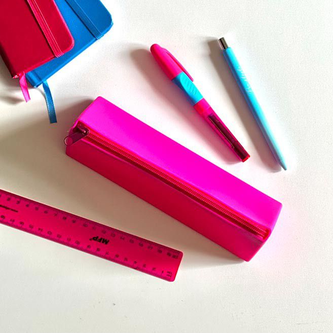 Tento hranatý silikonový penál v zářivých barvách zaujme na první pohled.