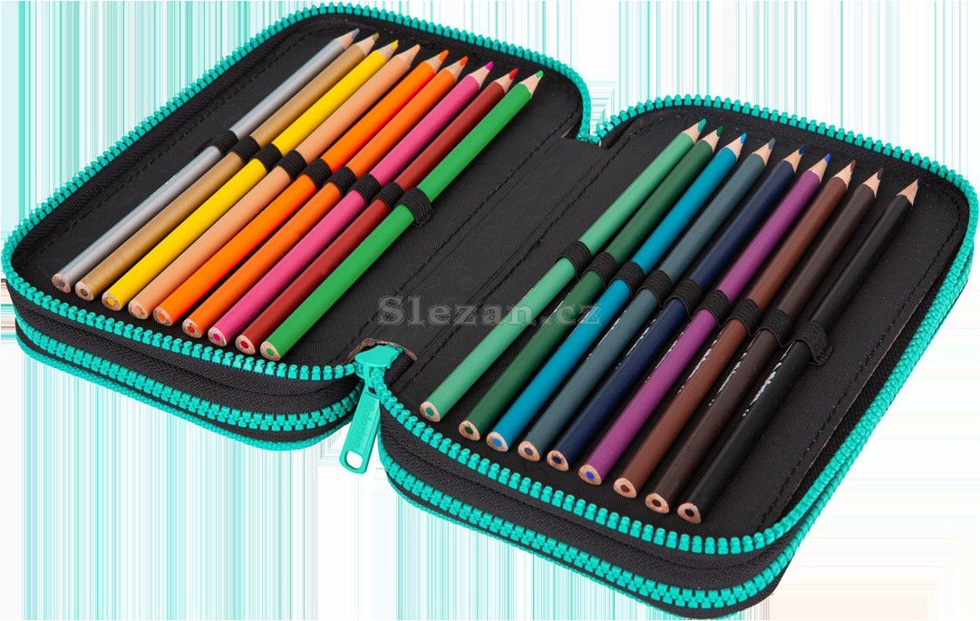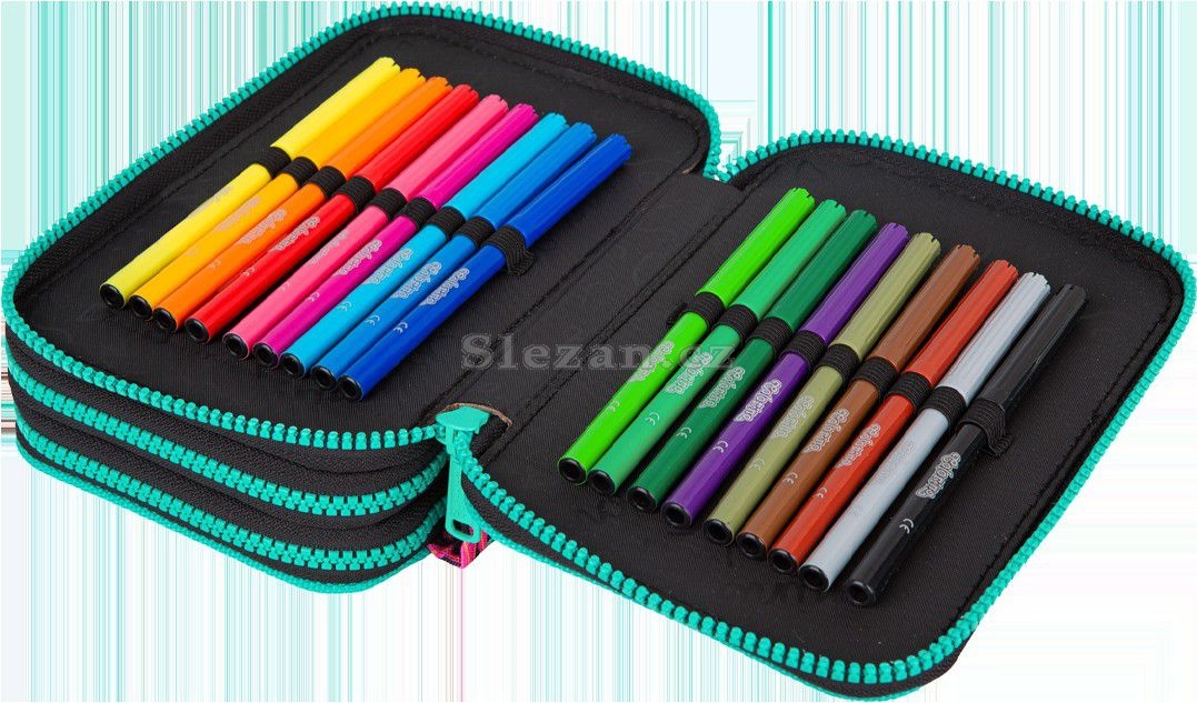 Obsahuje: 18 × fixa, 18 × pastelka,1 × nůžky, 1× guma a ořezávátko, 2 tužka, 2× propiska, 3 × pravítko