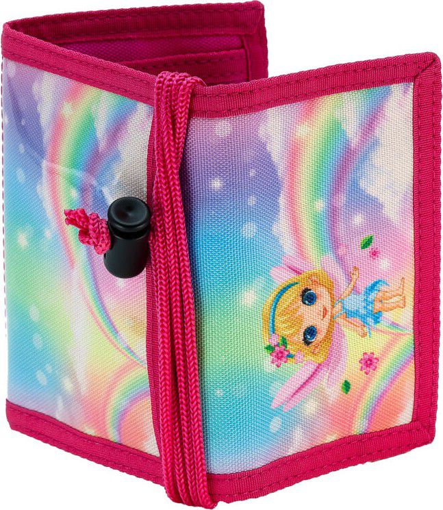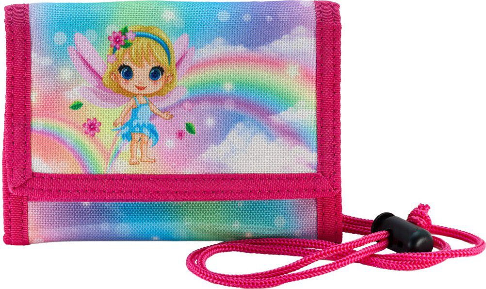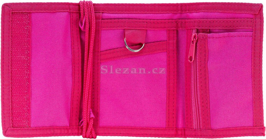 Peněženka se zavře suchým zipem a zavěsí na krk látkovou šňůrkou.