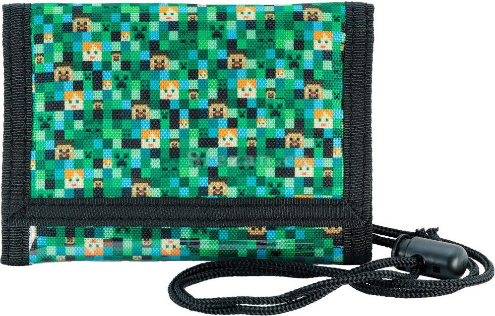 Peněženka se zavře suchým zipem a zavěsí na krk látkovou šňůrkou.
