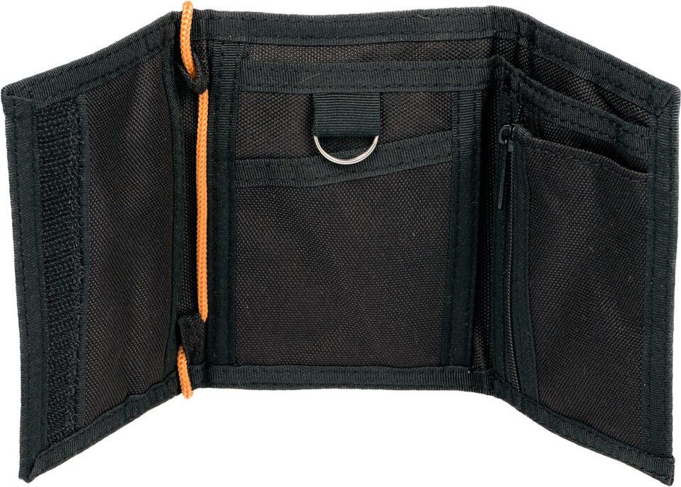 Uvnitř naleznete chytrý organizér s pěti kapsami na bankovky a další drobnosti, kapsu na zip na mince a kovový kroužek na klíče.