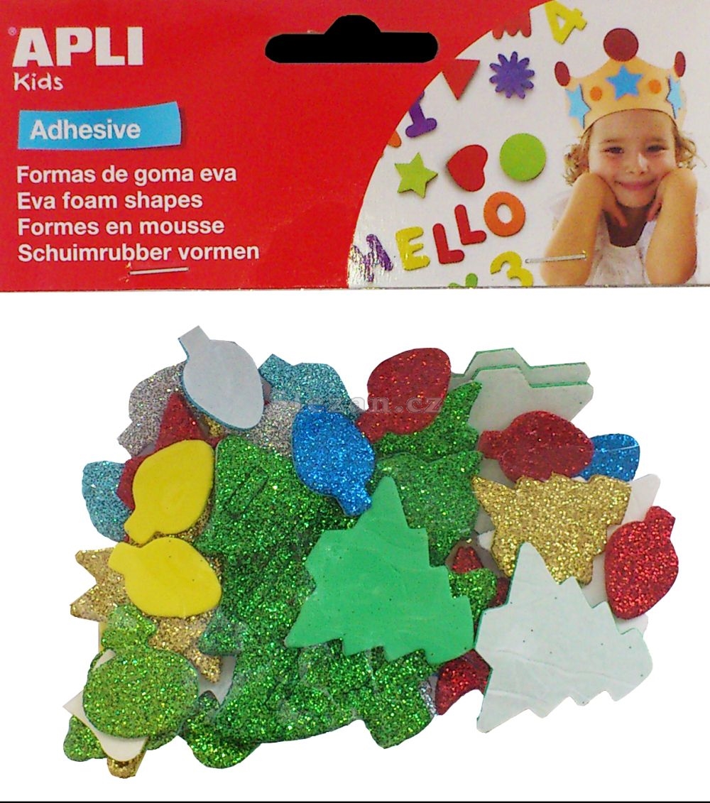 Popis Pěnovka tvary vánoční stromeček se třpytkami, mix metalických barev, 55 ks