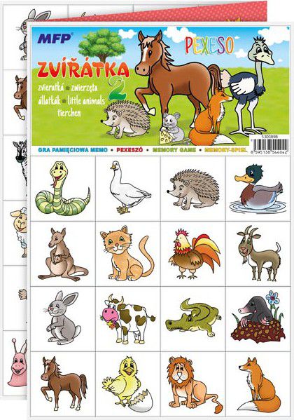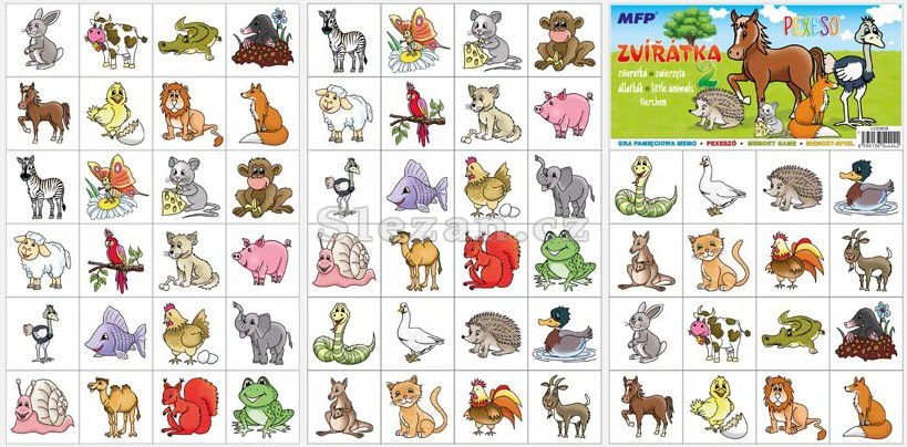 Výborná učební pomůcka pro děti a rodiče. Naučte své děti poznávat zvířata a procvičujte jejich paměť. Tato hra je zabaví na dlouhé hodiny. Pexeso se skládá ze tří A4, na kterých najdete 64 kartiček malovaných zvířat a návod ke hře.