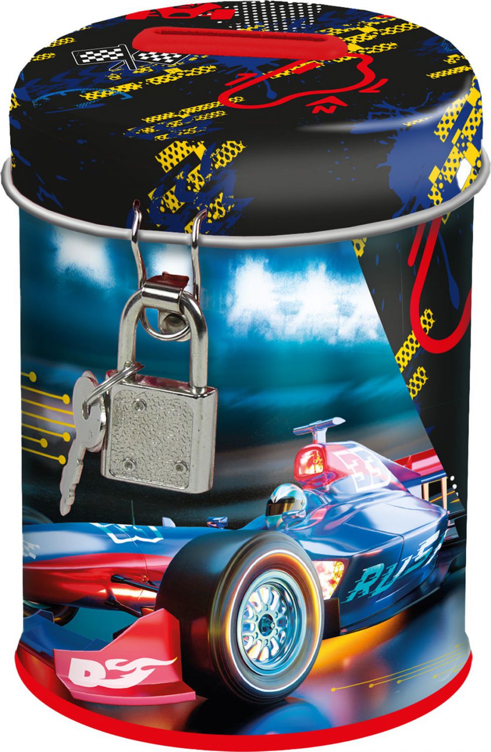 Plechová pokladnička se zámkem