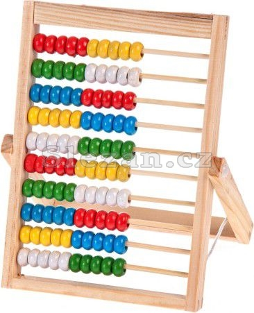 Počítadlo se skládá z 10 řad barevných korálků.