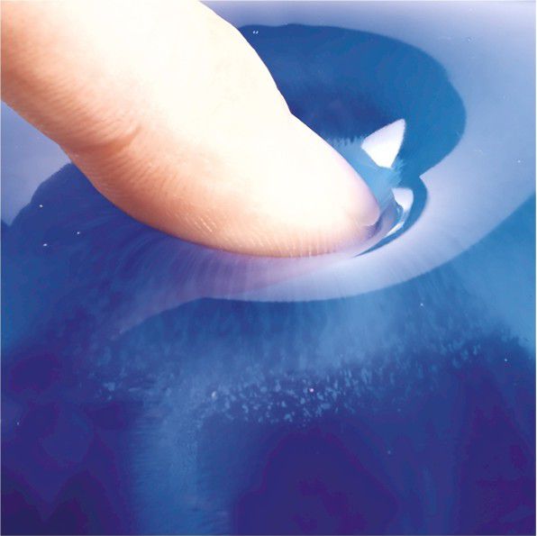 tvar podložky pod zápěstí je závislý na síle tlaku ruky a tělesné teplotě, zlepšuje krevní oběh