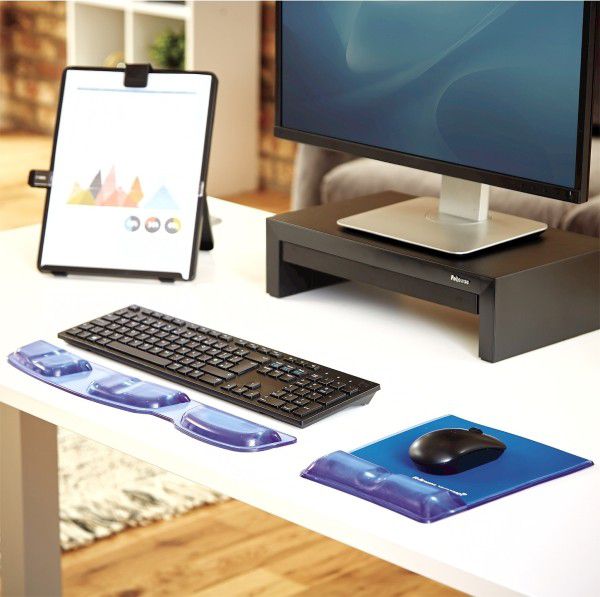 Podložka pod myš a zápěstí Fellowes Health-V CRYSTAL gelová Microban modrá
