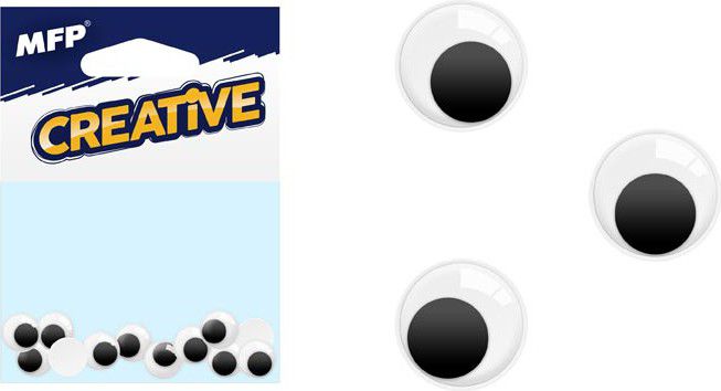 Pohyblivé nalepovací oči o průměru 1 cm.