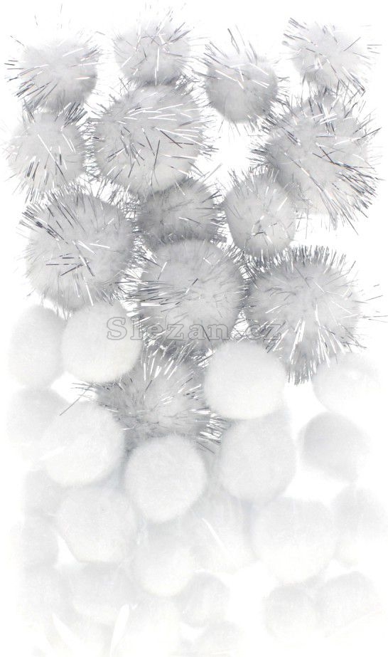 Popis Pompony 50 ks mix bílé třpytivé
