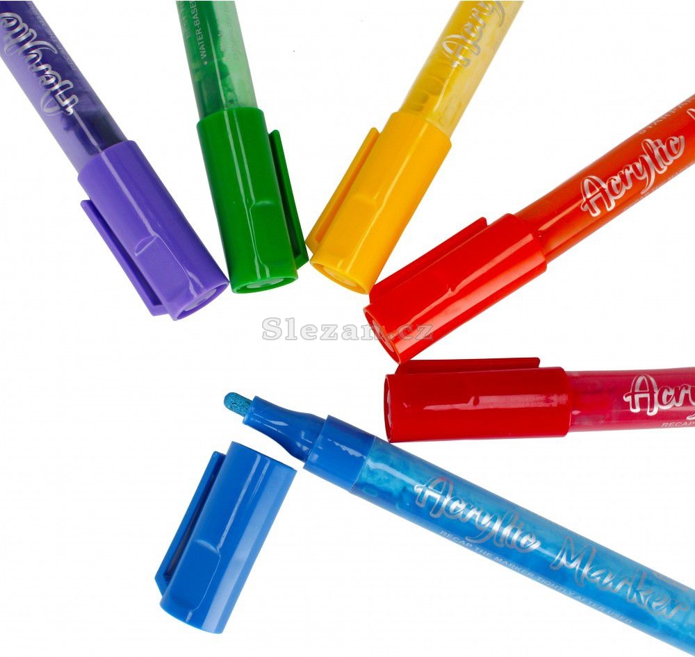 Perfektní pro použití ve škole, kanceláři, domácnosti, určeno na mnoho povrchů, např. karton, dřevo, keramika, sádra, látka, kůže. Neprůhledné a intenzivní barvy.