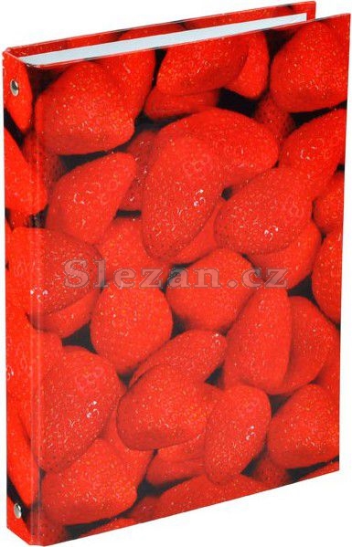 Kroužkový pořadač s motivem jahod velikosti A5. Praktický na uchování důležitých dokumentů a listin.