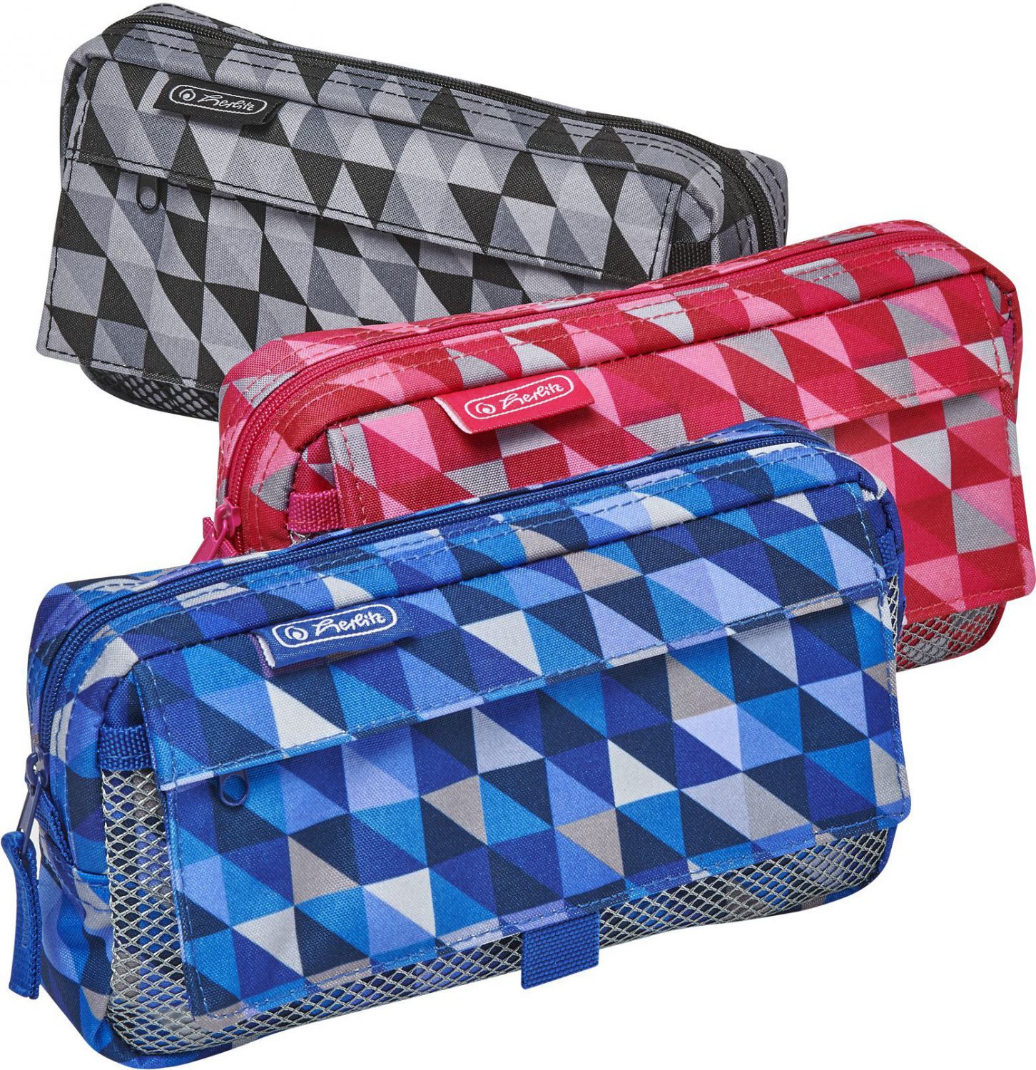 Popis Pouzdro, 2 kapsy, Geometrické tvary, modré