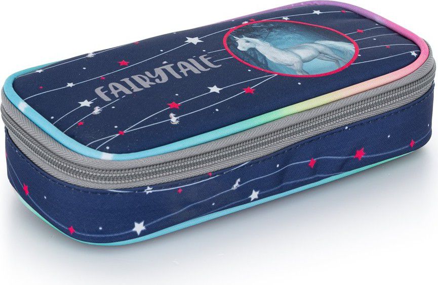 Školní pouzdro etue OXY s motivem jednorožce. Pouzdro je opatřeno pevnými zipy, kapsičkou na zip a klopou s pevnými poutky po obou stranách. Pod klopou je místo pro volné uložení psacích potřeb nebo jiných drobností. Vhodné pro školáky na 2. stupni a starší studenty.