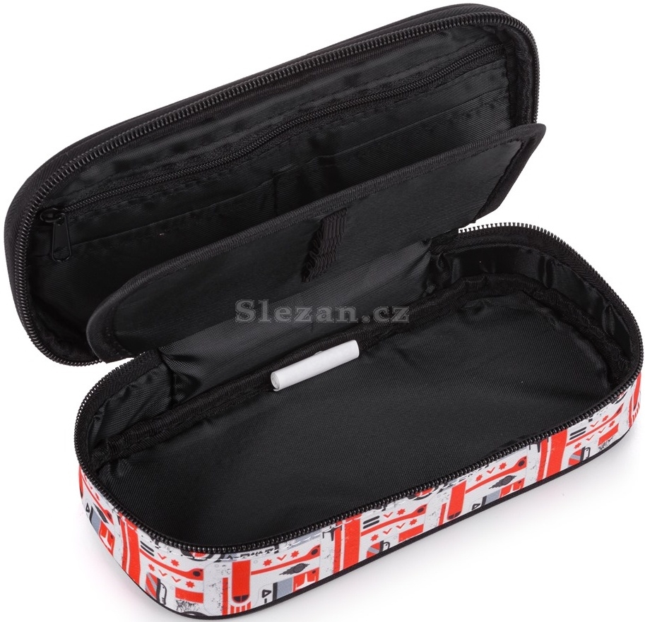 Pouzdro je opatřeno pevnými zipy, kapsičkou na zip a klopou s pevnými poutky po obou stranách.