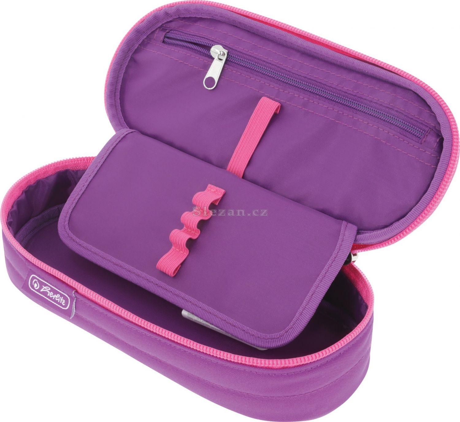 Pouzdro etue s prostornou hlavní přihrádkou na zip: klopa s integrovanou kapsou na zip a poutky na pero,