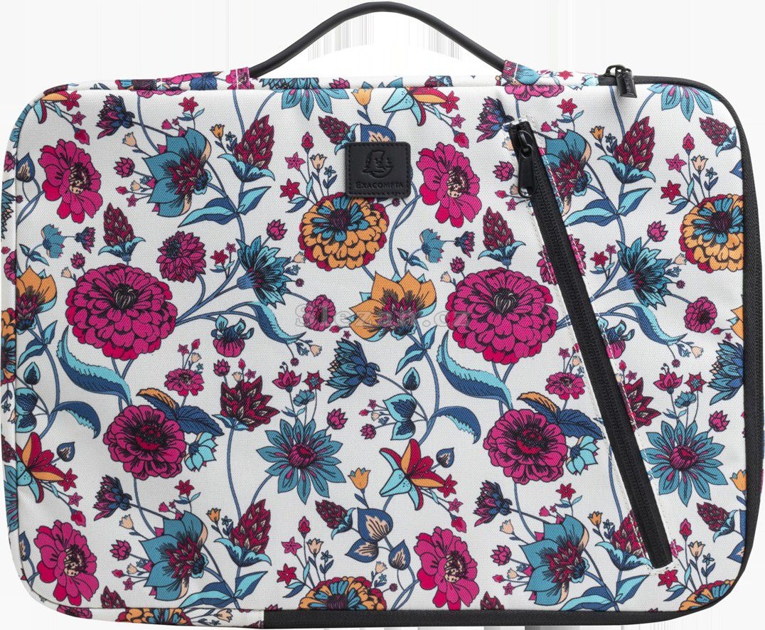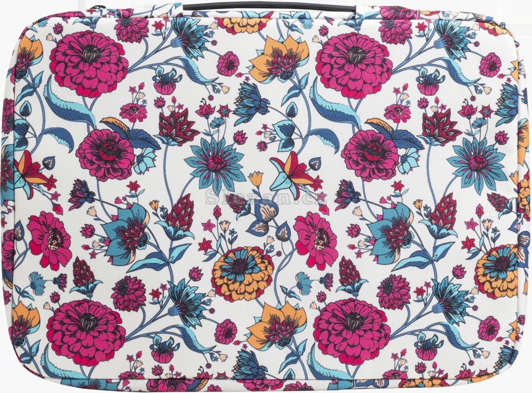 Výrazný motiv barevných květů na světlém podkladu. Svým rozměrem pojme pouzdro notebook o velikosti 15"- 16".