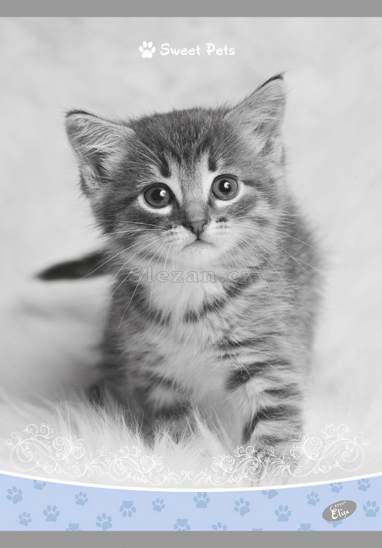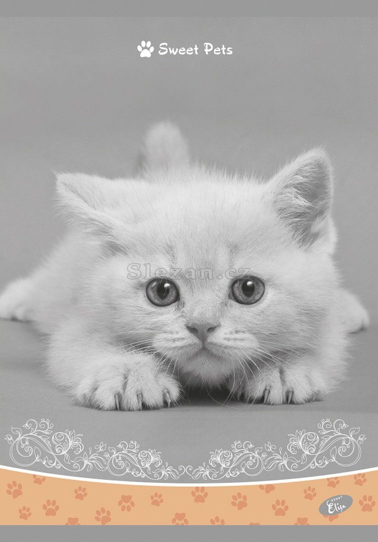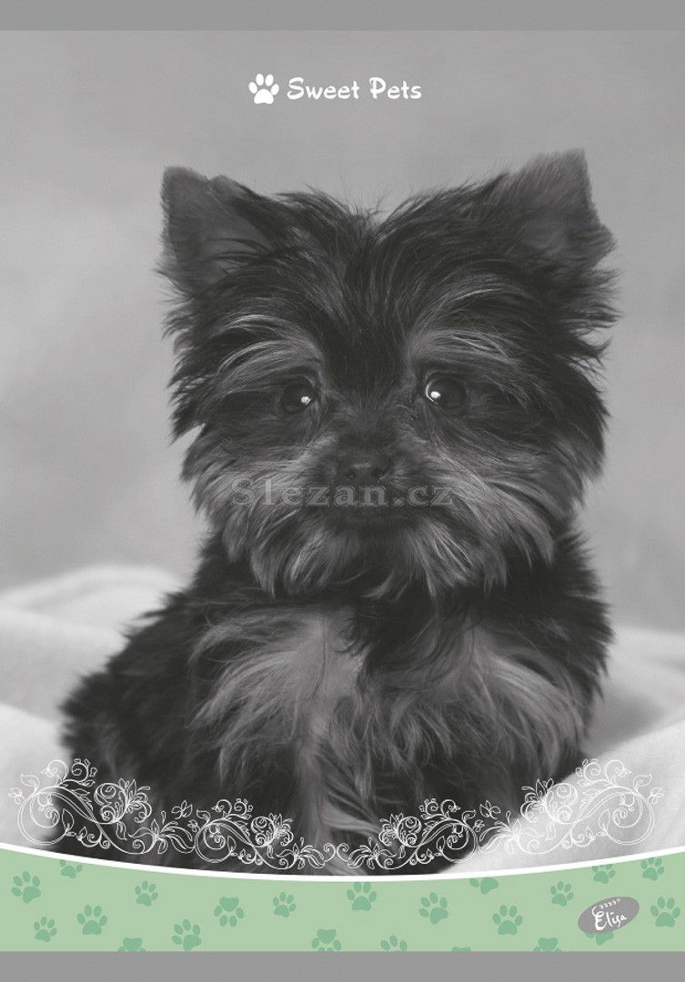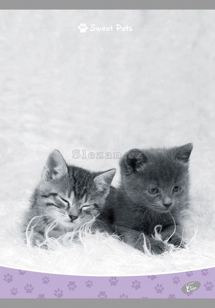 Kolekce sešitů s fotografiemi roztomilých mláďat domácích mazlíčků.