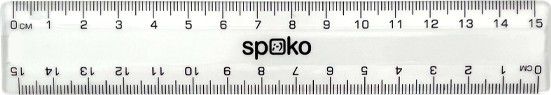 Ploché, základní pravítko s předtištěnou stupnicí o délce 15 cm.