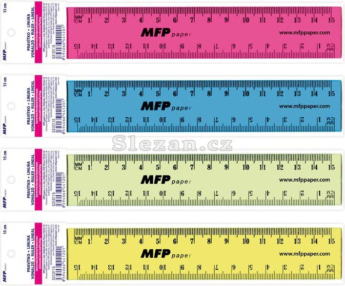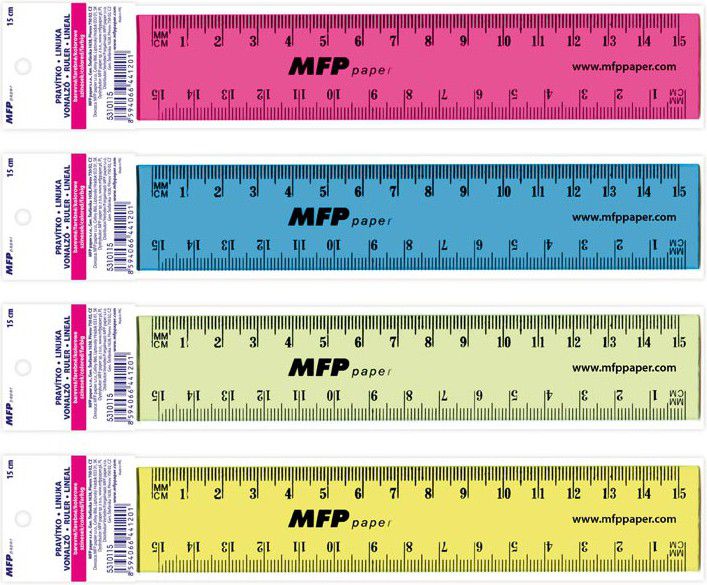 Školní, rovné, plastové pravítko ve 4 barvách o délce 15 cm - pomocník při geometrii.