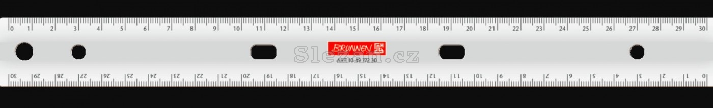 Pravítko 30 cm, transparentní a pružné a odolné proti zlomení.