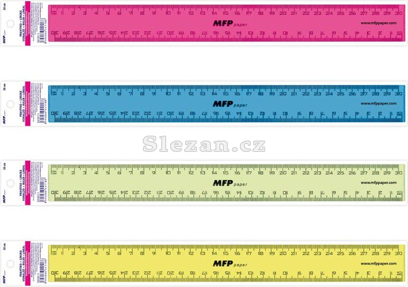 Školní, rovné, plastové pravítko ve 4 barvách o délce 30 cm - pomocník při geometrii.