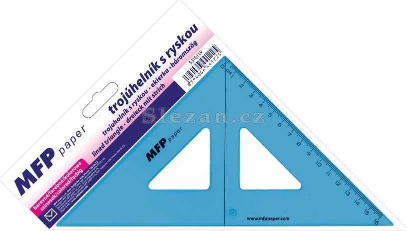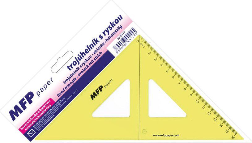 Školní, plastové pravítko pravoúhlý trojúhelník s ryskou o délce 45 cm - pomocník při geometrii.