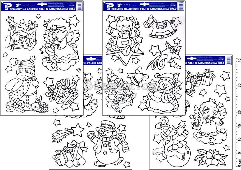 Předlohy s vánočními motivy na adhézní fólii s vyvýšenou konturou.