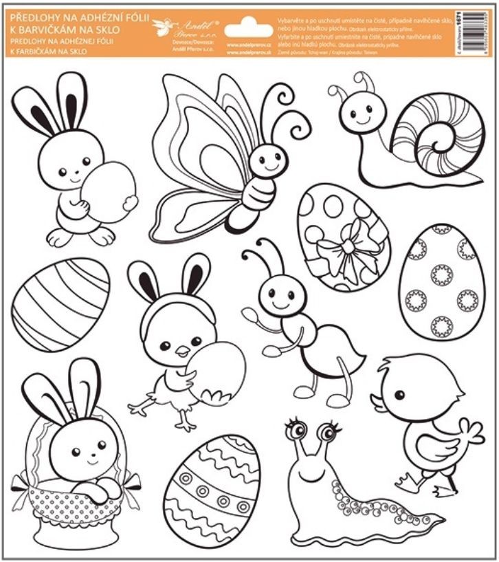 Tyto adhezní předlohy s velikonočními motivy nabízí perfektní základ pro vaši kreativitu. Předlohy s vyvýšenou černou konturou jsou připravené k vybarvení pomocí barev na sklo, barevných lepidel, glitrů a dalších technik. Ideální pro vytváření krásných dekorací na sklo, okna nebo jiné hladké povrchy.