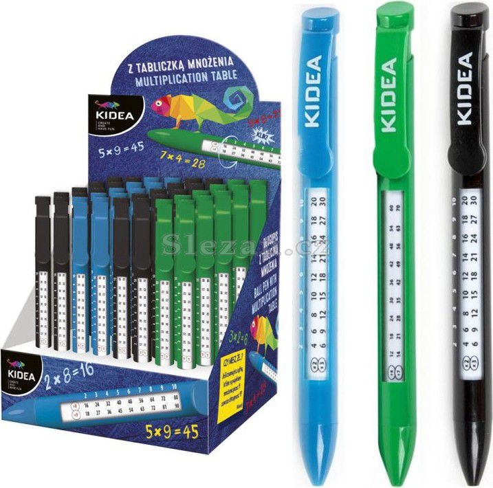 Na těle má zobrazenou násobilku, která se po stisknutí změní. 3 barevné provedení: zelená, modrá a černá.