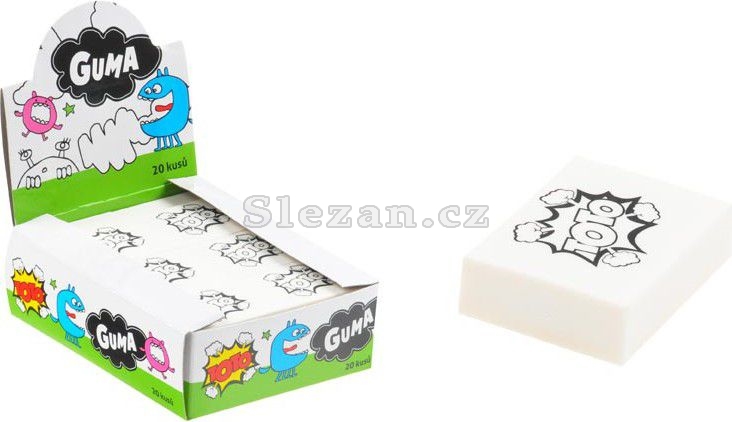 Školní bílá mazací pryž, guma s nápisem "TOTO" - nezbytná součást každého školáka