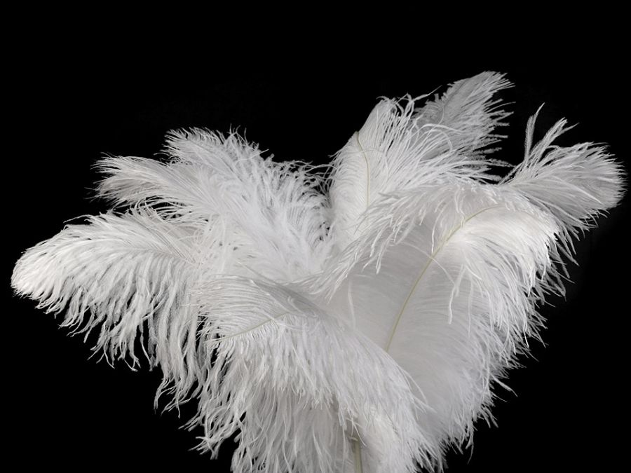 Ozdobné pštrosí peří s velkým podílem jemného chmýří využijete k dekoračním účelům, působí luxusně. Vzhledem k tomu, že to je přírodní materiál, může mít každé pero jiné zakřivení a jiný tvar. [Některá pírka jsou ustřižená, některá jsou dlouhá.] Šířka peří je cca 20 cm. Použití: Peří dodá exotický vzhled květinovým vazbám nebo ikebanám. Je vhodné jako aranžmá na plesech, oslavách, párty apod. Efektně ozdobí karnevalové nebo divadelní kostýmy, klobouky a fascinátory.