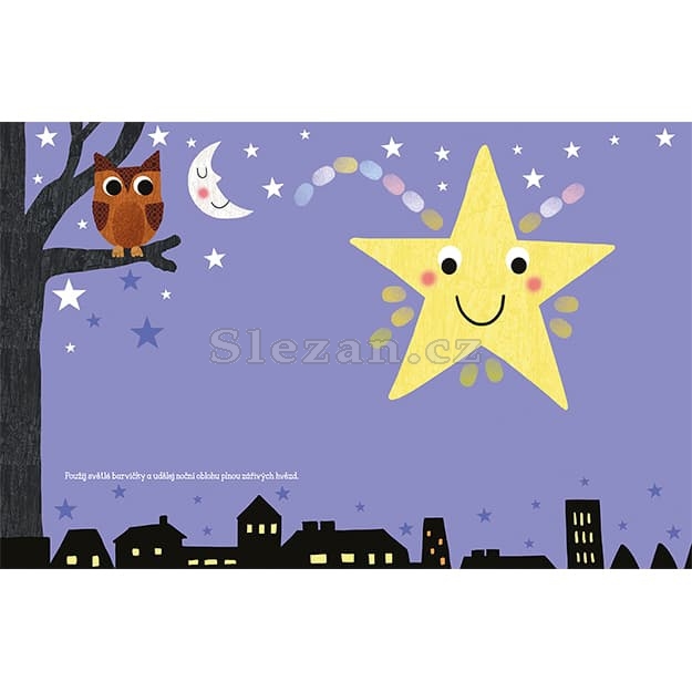 Obsahuje 32 stránek plných veselých obrázků k dorazítkování a 6 prstových barev.