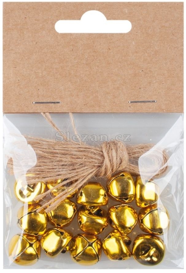 Popis Rolničky zlaté 1,5 cm s provázkem, 15 ks v sáčku