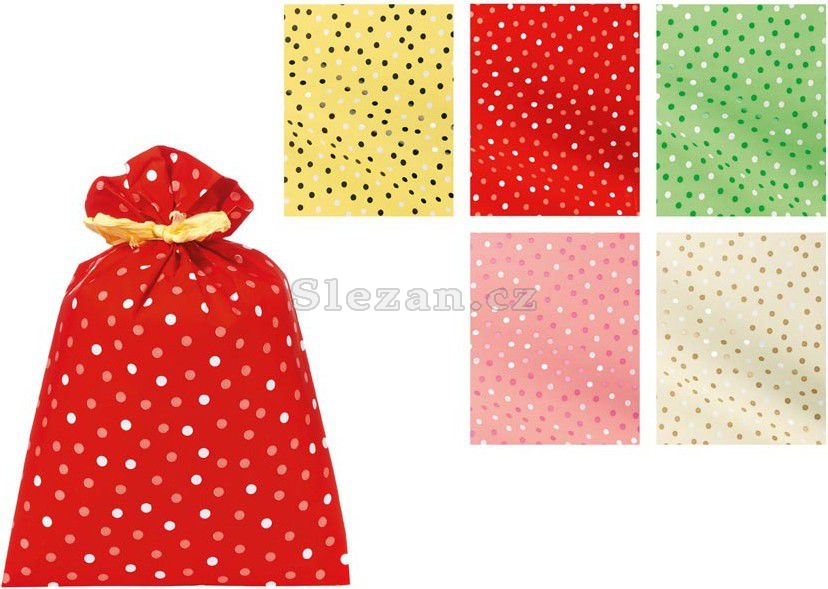 Dárkový sáček s motivem barevných puntíků v mixu barev.