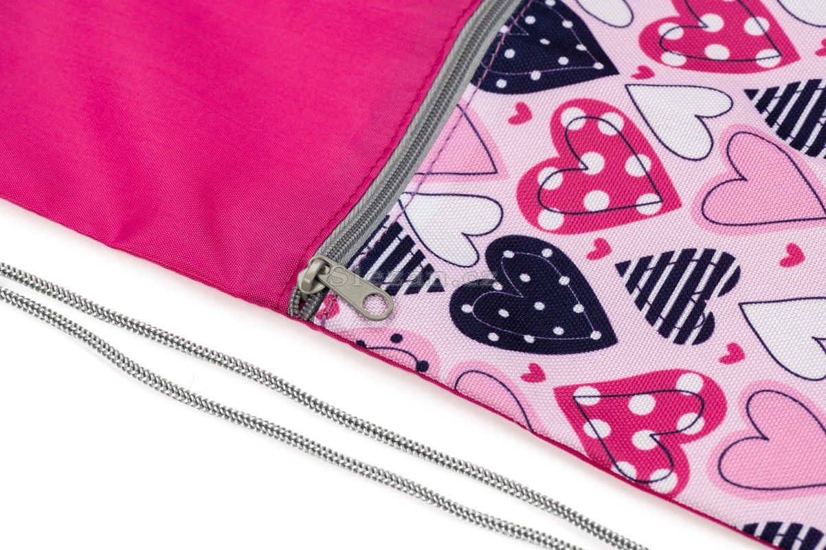 Stahovací šňůrka spojená se spodní částí promění sáček v malý batůžek na záda.