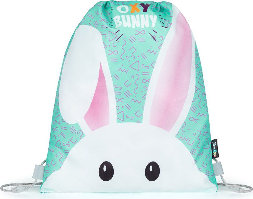 Sáček na přezůvky s motivem králíčka. Uzavírání stažením šňůrek, možnost nosit i na zádech nebo připevnit ke školnímu batohu. Materiál 100% polyester.