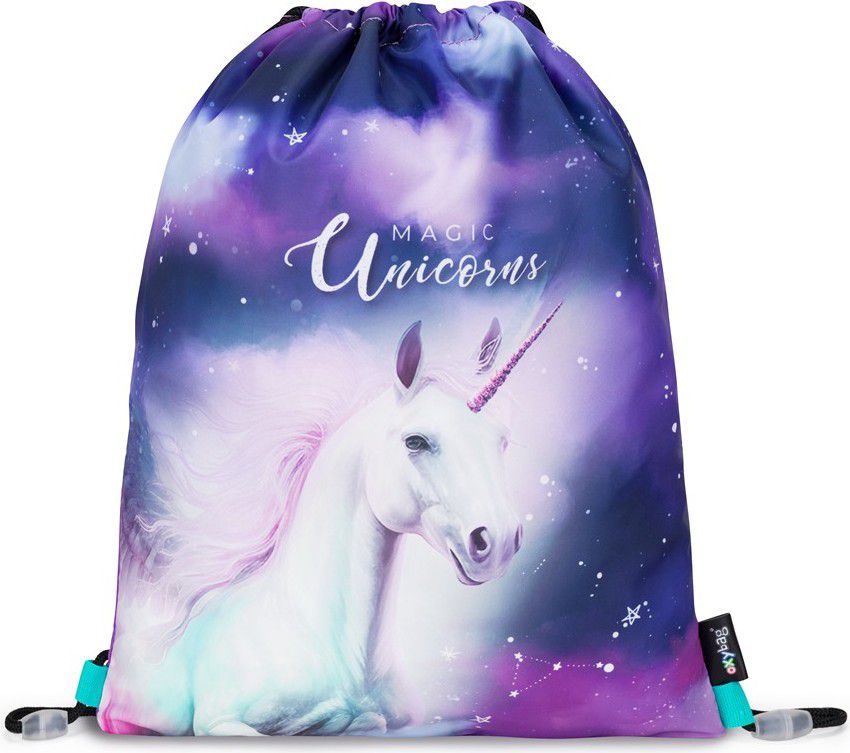Uzavírá se snadno stažením šňůrek a lze ho nosit na zádech jako batůžek nebo připevnit ke školnímu batohu.
