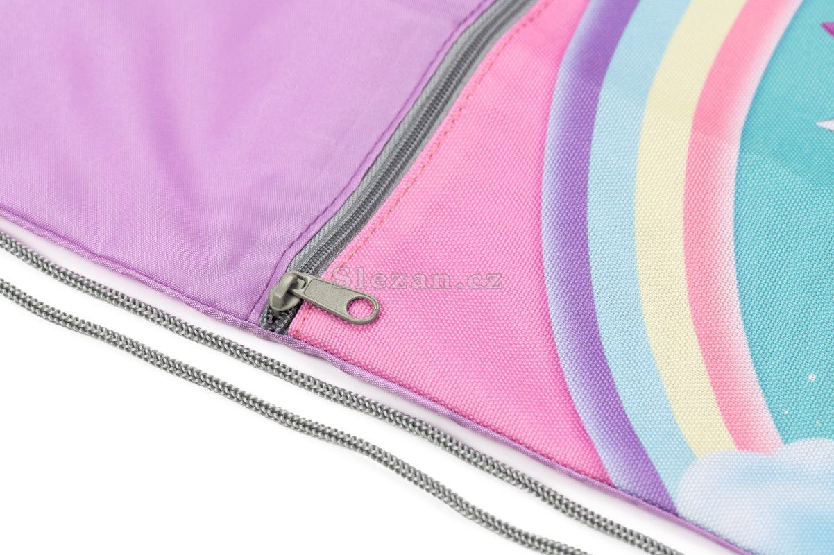 Sáčky na cvičky jsou praktickým doplňkem školní aktovky pro uložení přezůvek či věcí na tělocvik. Vodoodpudivý pevný materiál udrží věci v suchu. Kapsa na zip oddělí boty od ostatního oblečení. Stahovací šňůrka spojená se spodní částí promění sáček v malý batůžek na záda.