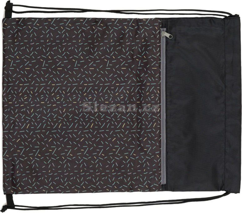 Stahovací šňůrka spojená se spodní částí promění sáček v malý batůžek na záda.