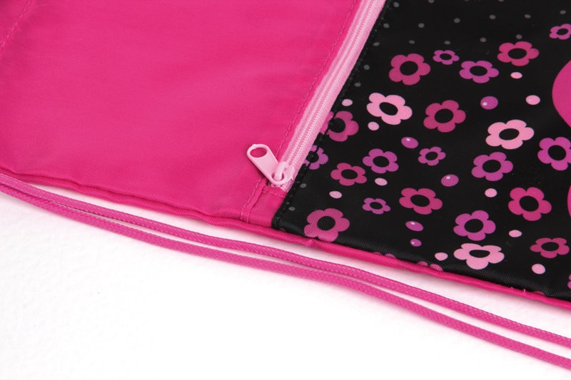 Stahovací šňůrka spojená se spodní částí promění sáček v malý batůžek na záda.