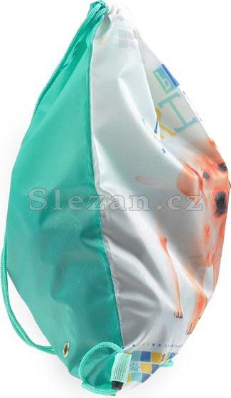 Školní sáček na přezůvky se šňůrkou na zatažení s obrázkem štěňat.