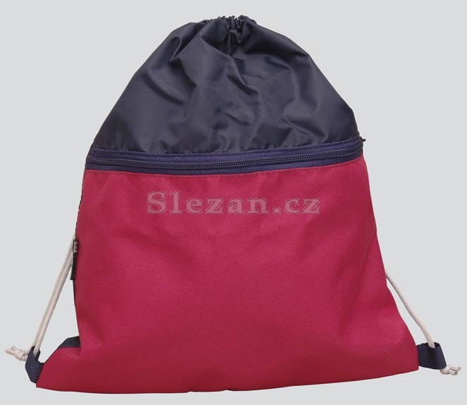 Sáček na přezůvky velký s kapsou, má kapsu na zip a šňůrky, umožňující jeho nošení jako batůžek.