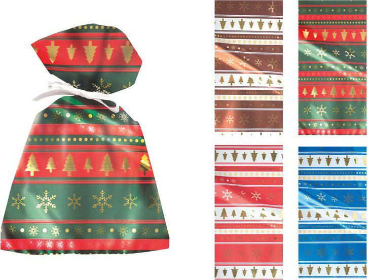 Vánoční dárkový sáček Canazei - kouzlo tradičních Vánoc Vdechněte svým dárkům atmosféru klasických Vánoc. Vánoční dárkový sáček Canazei zaujme tradičním motivem zlatých stromečků a sněhových vloček, které se krásně třpytí na lesklém povrchu. Jeho vzor připomíná staré vánoční dekorace – elegantní, klidné a plné hřejivé nostalgie. Díky elegantnímu zlatému potisku působí každý dárek slavnostně a výjimečně.