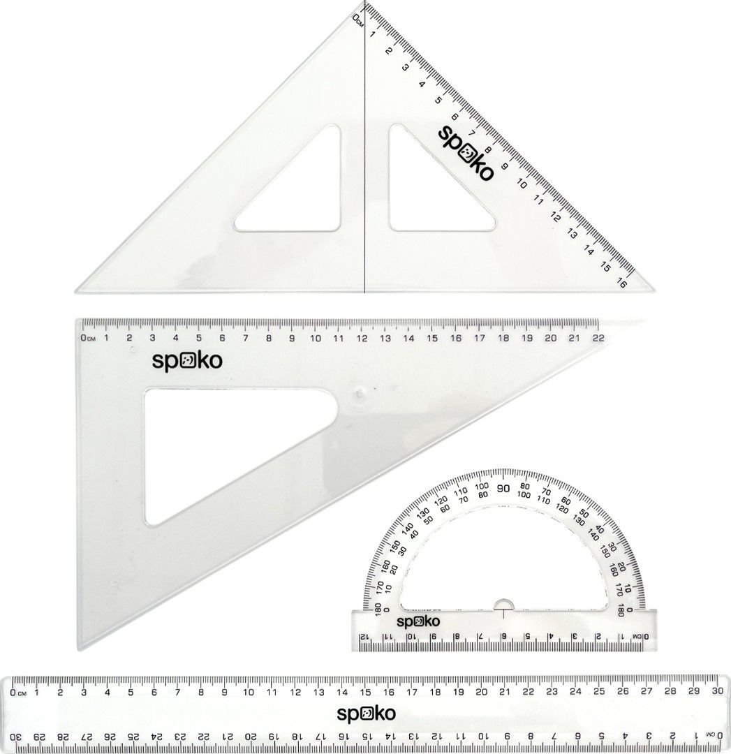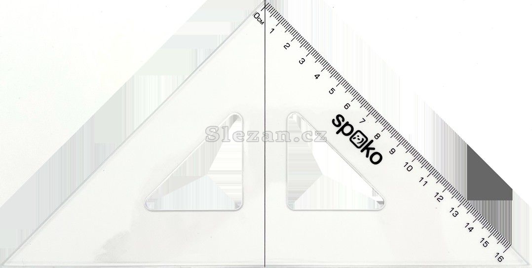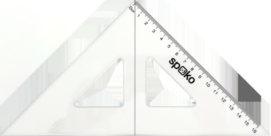 Sada obsahuje ploché pravítko, trojúhelník s ryskou, úhloměr, pravoúhlý trojúhelník.